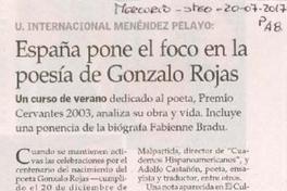 España pone el foco en la poesía de Gonzalo Rojas [artículo]. El Mercurio (Diario : Santiago, Chile)-- Julio 20, 2017, página A8. 1 página ; 15 cm. .