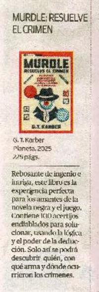 Murdle: Resuelve el crimen [artículo]. El Austral (Diario : Valdivia, Chile)-- Junio 8, 2025, página 19. (Suplemento "Australetras") 1 página : ilustración en color ; 12 cm. .