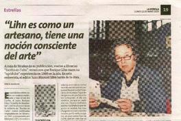 "Lihn es como un artesano, tiene una noción consciente del arte" [artículo] / Valeria Barahona. La Estrella(Diario : Chiloé, Chile)-- mayo 12, 2025, página 19. 1 página : ilustración en color ; 32 cm. .