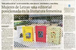 Mujeres de letras : una editorial posicionada en la literatura femenina [entrevista] [artículo] : Por Sebastián Grant del Río.