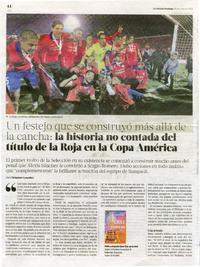 Un festejo que se constuyó más alla de la cancha: la historia no contada del título de la Roja en la Copa América [artículo] / Por Christian González. La Tercera (Diario : Santiago , Chile)-- Junio 29, 2025, páginas 44-45. 2 páginas : ilustración en color ; 33 cm. .