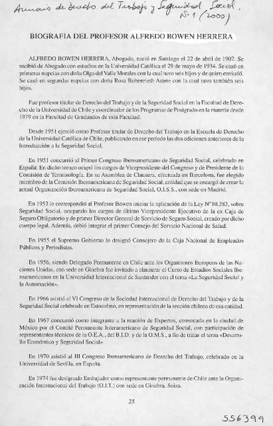 Homenaje al profesor Alfredo Bowen [artículo] Hugo Cifuentes Lillo