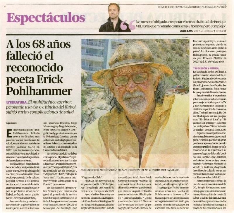 A los 68 años falleció el reconocido poeta Erick Pohlhammer [artículo]