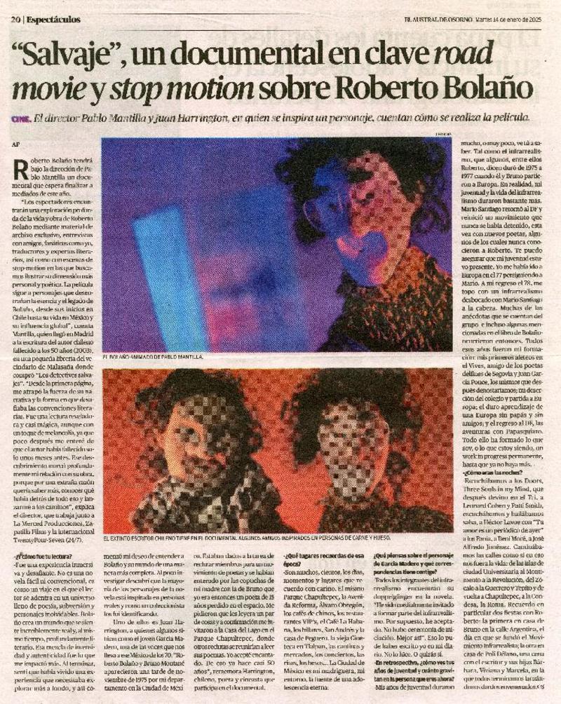 "Salvaje", un documental en clave road movie y stop motion sobre Roberto Bolaño. [artículo].