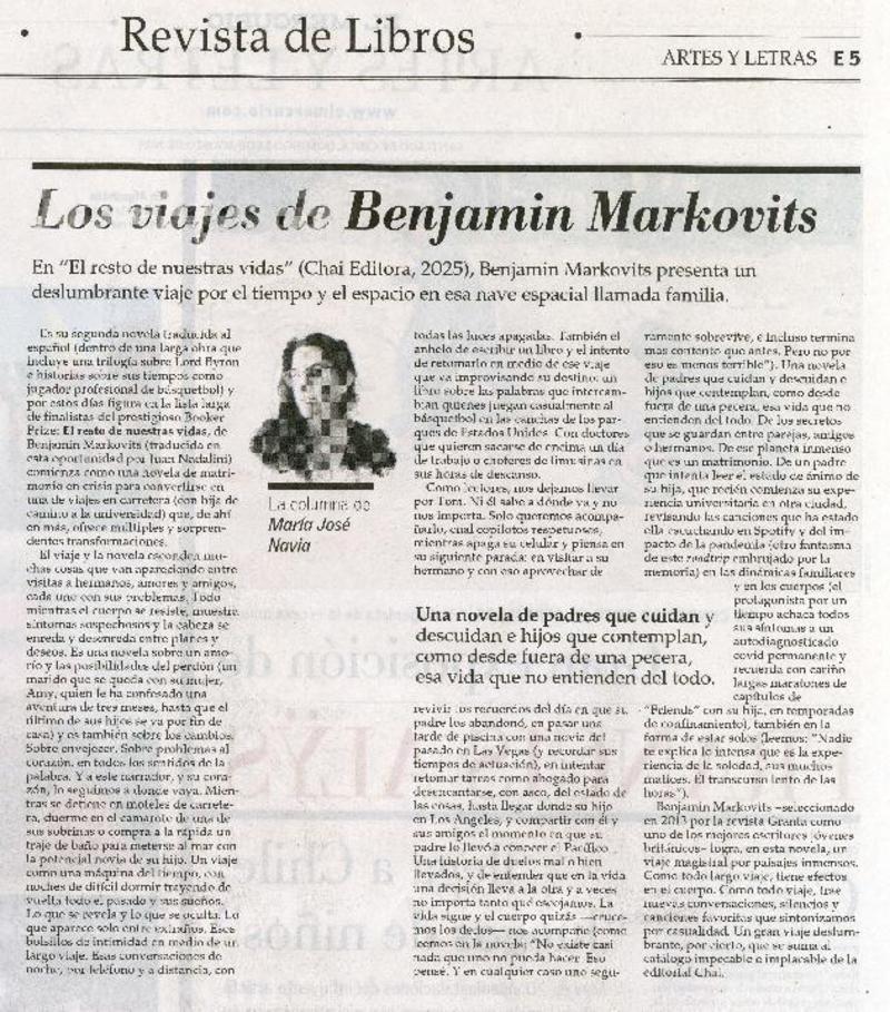 Los viajes de Benjanín Markovits [artículo] La columna de María José Navia.