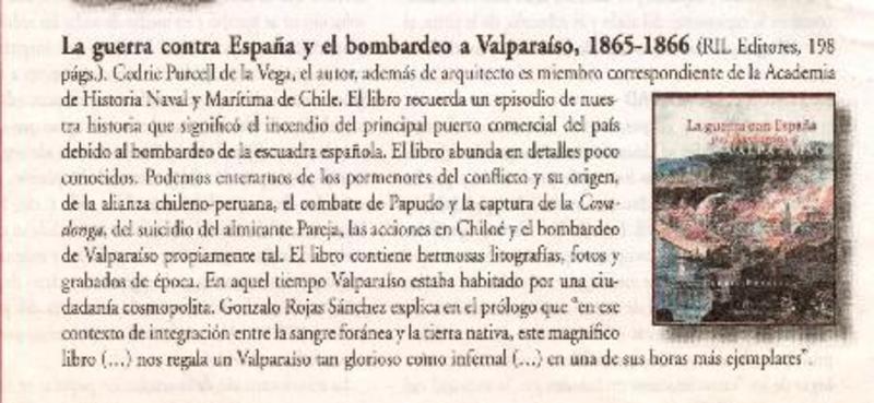 La guerra contra España y el bonbardeo a Valparaíso, 1865-1866 [artículo] Alejandro Lavquen.
