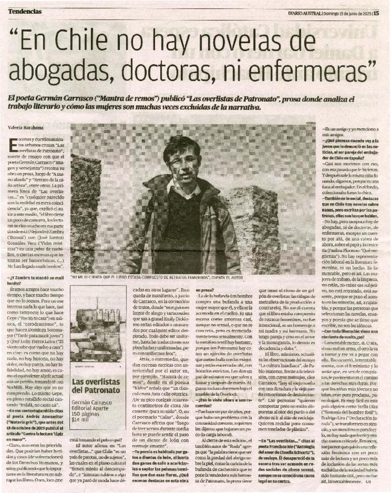 Autores chilenos - Entrevistas - Carrasco, Germán - Mantra de remos - Las overlistas de Patronato