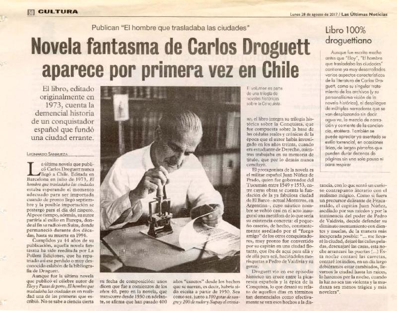 Novela fantasma de Carlos Droguett aparece por primera vez en Chile [artículo] Leonardo Sanhueza.