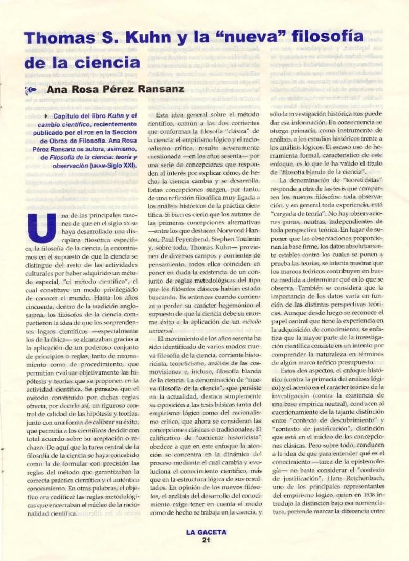 Thomas S. Kuhn y la "nueva" filosofía de la ciencia [artículo] Ana Rosa Pérez Ransanz.