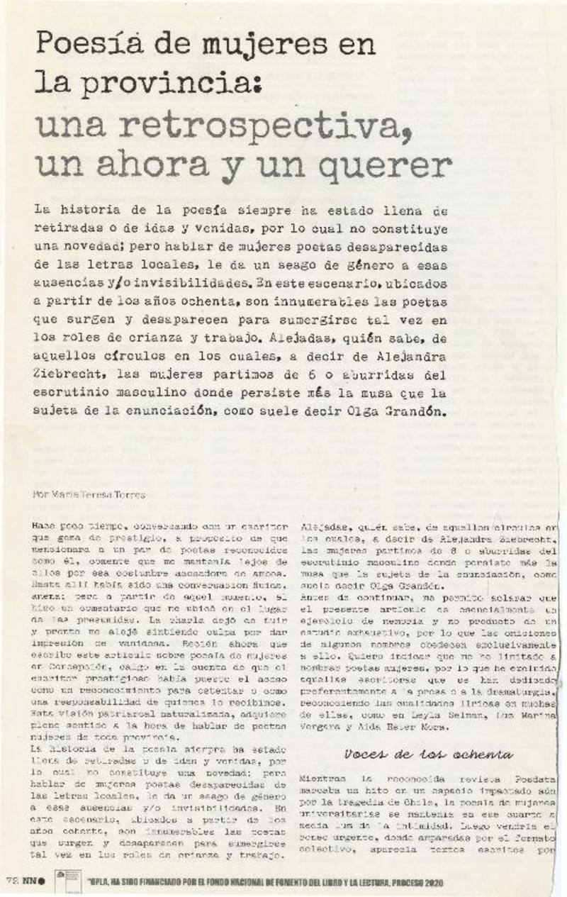 Autoras chilenas - Muñoz, Rosabetty - entrevistas - "La voz de la casa"