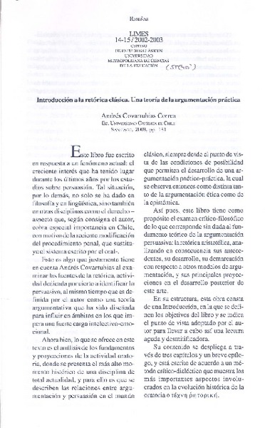 Autores chilenos - Introducción a la retórica clásica, una teoría de la argumentación práctica - Covarrubias Correa, Andrés
