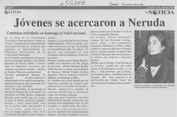 Jóvenes se acercaron a Neruda [artículo]