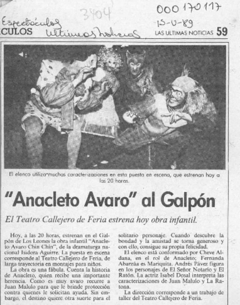 Estrenan obra infantil "Don Anacleto avaro" [artículo].