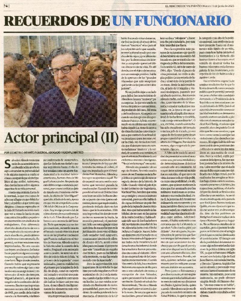 Actor principal (II) [artículo] Por Demetrio Infante Figueroa, abogado y exdiplomático.