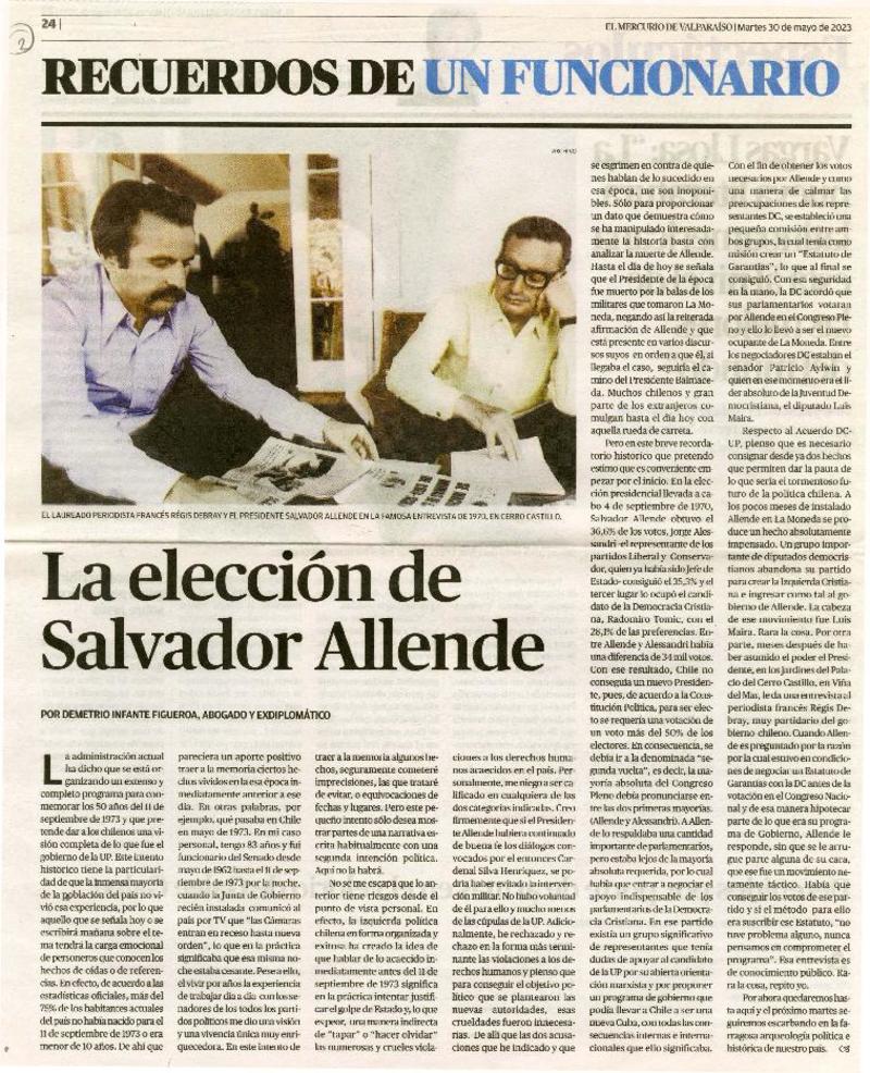 La elección de Salvador Allende [artículo] Por Demetrio Infante Figueroa, abogado y exdiplomático.