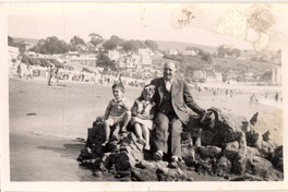 [Hombre y niños en roquerío de un balneario] [fotografía]. [Chile] : [entre 1930 y 1940]. 1 fotografía : monocromo, gelatina sobre papel fibra ; 6 x 9 cm. .