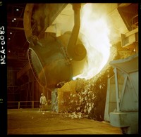 [Trabajador de la acería, hornos de refinamiento] [fotografía] / Jack Ceitelis. Chile : Jack Ceitelis, [1989]. Negativo : policromo, gelatina sobre acetato de celulosa ; 6 x 6 cm. .