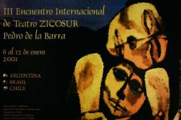 III encuentro internacional de teatro ZICOSUR Pedro de la Barra 6 al 12 de enero 2001 : Argentina Brasil Chile. [estampa] :