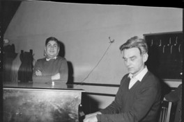 [Ernst Uthoff, toca el piano, una señora a su lado le obseva] [fotografía] / Hans Ehrmann. [Chile] : Hans Ehrmann, 1960. 2 negativos : monocromo, gelatina sobre acetato de celulosa ; 6 X 6 cm. .