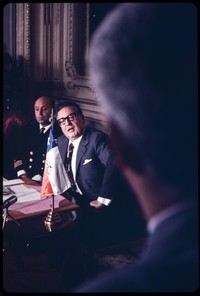 [Primeros planos del presidente Salvador Allende, con Arturo Araya Peters al fondo, en una oficina del Palacio de La Moneda] Michael Mauney