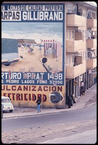 [Mural publicitario en fachada de edificio] Michael Mauney Santiago : Michael Mauney. 1971 1 diapositiva : policromo, gelatina sobre poliester ; 35mm. .