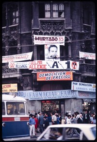 [Palacio Undurraga, fachada con afiches publicitarios y propaganda política] Michael Mauney