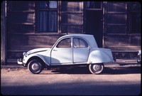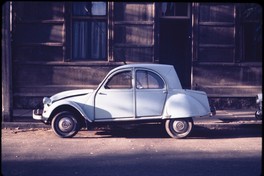 Conjunto de 10 imágenes tomadas en Santiago en 1971 que registran automóviles particulares y vehículos de transporte público en circulación o estacionados en distintas calles de la ciudad. Se observan micros de colores utilizadas en los recorridos Ovalle-Negrete y Matadero-Palma, así como automóviles de distintas marcas y modelos que formaban parte del tránsito urbano de la época.