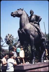 [Vista de la estatua ecuestre de Pedro de Valdivia en la Plaza de Armas de Santiago] Michael Mauney Santiago : Michael Mauney. 1971 2 diapositivas : policromo, gelatina sobre poliester ; 35mm. .