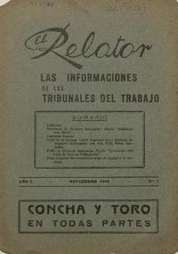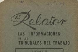 El relator : las informaciones de los tribunales del trabajo. Santiago : [s.n.], 1942 (Santiago : Tall. Gráf. E.T.G.) 1 número ; 26 cm. .
