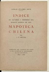 Indice de autores y nombres del Ensayo acerca de una mapoteca chilena por J. T. Medina Carlos Stuardo Ortiz.