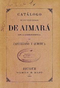 Catálogo de las voces usuales de aimará con la correspondencia en castellano y quechua. Iquique : Gamón e Hijo, 1894. 35 p. ; 15 cm. .