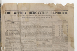 The Weekly mercantile reporter. Valparaíso : F.M. Cronau, C.W. Brink, M.D., 1849 (Valparaíso : Office of The Mercurio) 12 números ; 47 cm. .
