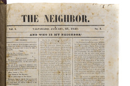 The Neighbor. Valparaíso : David Trumbull, 1847-1851. (Valparaíso : The Mercury Office) 1 volumen ; 38-48 cm. .