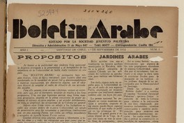 Boletín arabe / Sociedad Juventud Palestina. Santiago : La Sociedad, 1932-1948 (Santiago : Impr. El Esfuerzo) 4 v. ; 39 cm. .