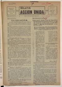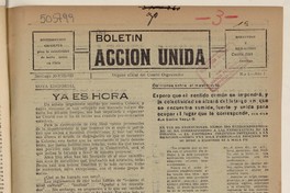 Boletín Acción Unida / órgano oficial del Comité Organizador. Santiago : El Comité, 1935 (Santiago : Reforma) 4 nos. : il. ; 37 cm. .