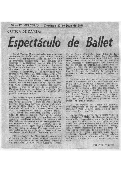 Saldías González, Antonio - Pérez, Carmen - Bravo, Patricio - Chayán, Rubén - Rodrigues, Alfred - Ballet - Crítica de danza - Velasco, Norma - Richter, Peter - Llansol, Rosario - Sirenas