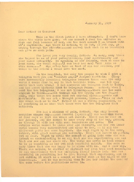 [Carta] 1957 jan. 31, [New York] [a] Esther de Cáceres, [Montevideo] [manuscrito] Doris Dana.