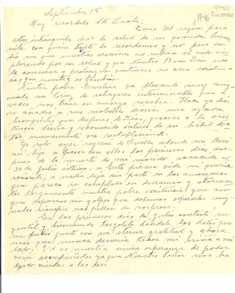 [Carta] 1946? sep. 15, [La Serena, Chile] [a] Lucila [Godoy Alcayaga] [manuscrito] Cristo.
