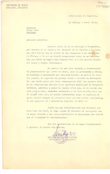 [Carta] 1965 ene. 5, La Serena, Chile [a] Doris Dana, Santiago, Chile [manuscrito] Doris Dana.
