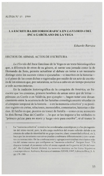 La escritura historiográfica en La Florida del Inca Garcilaso de la Vega [artículo] Eduardo Barraza.