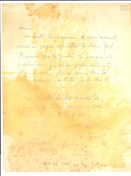Autores bolivianos - Mistral, Gabriela - Pereyra, Diómedes de - Manuscritos bolivianos - Correspondencia