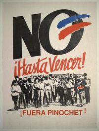 No, ¡hasta vencer! ¡fuera Pinochet!. [estampa] : [Chile] : [Editor no identificado], [198-?]. 1 cartel (afiche) : color ; 50 x 37 cm. .