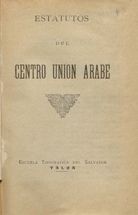 Estatutos / Centro Unión Arabe. Talca : Esc. Tip. del Salvador, 1929. 15 p. ; 17 x 11 cm. .