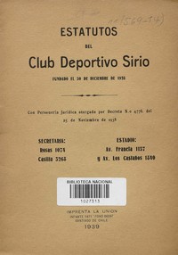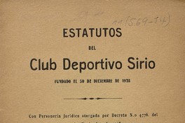 Estatutos / Club Deportivo Sirio. Santiago : Imprenta El Esfuerzo, 1939. 16 páginas ; 24 cm. .
