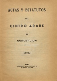 Actas y estatutos / Centro Arabe de Concepción. Concepción : [s.n.], 1947 (Concepción : Imprenta y Litografía Concepción) 20 páginas ; 19 cm. .