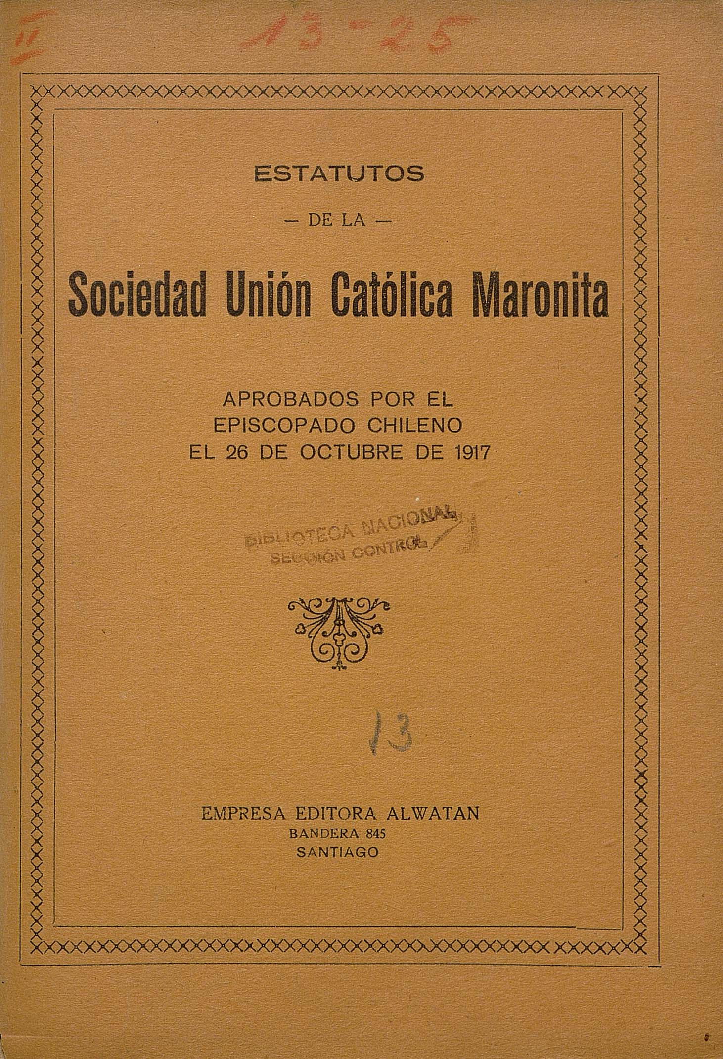 Estatutos de la Sociedad Unión Católica Maronita : aprobados por el episcopado chileno el 26 de octubre de 1917.