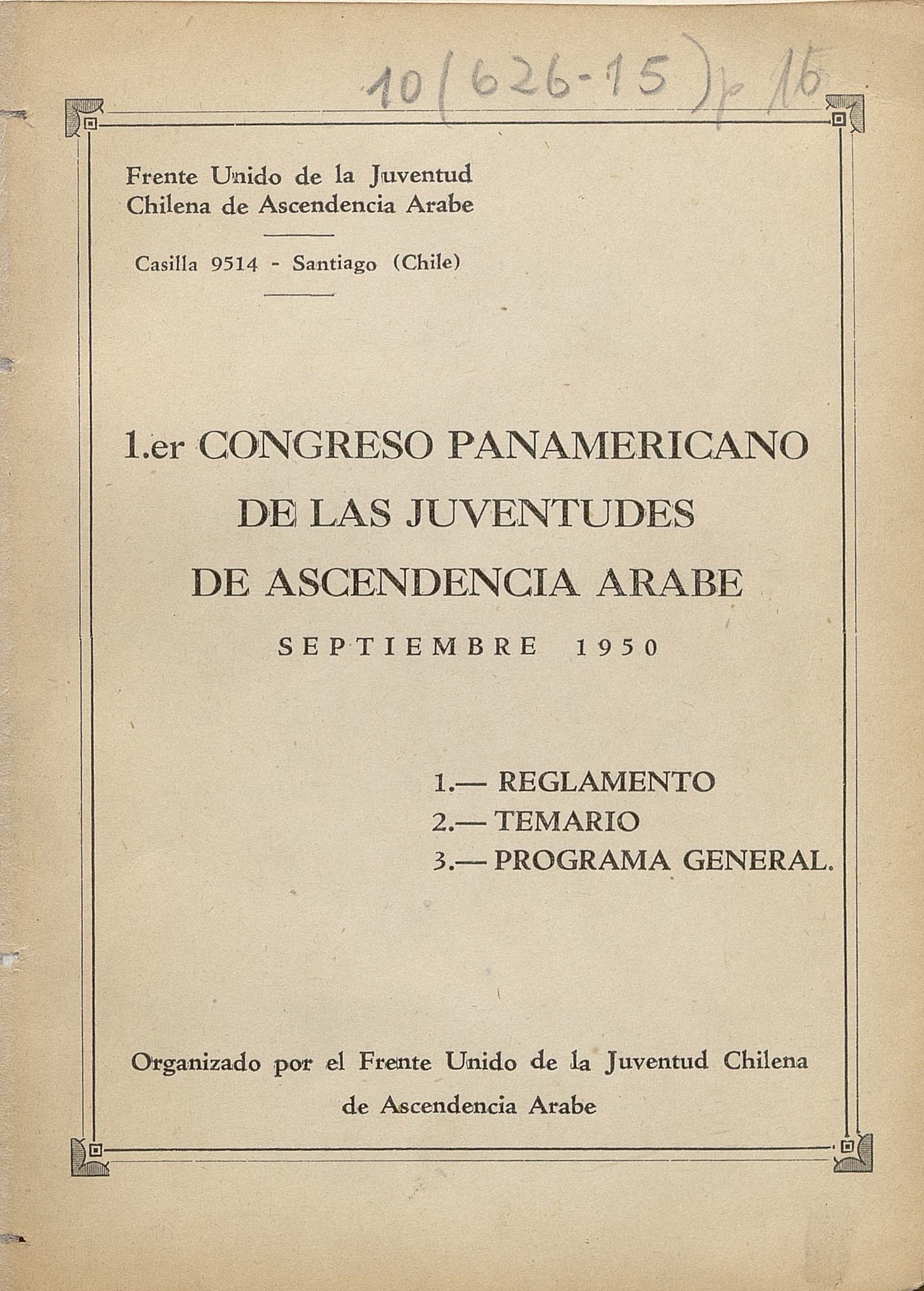 Inicio / Fondos y Colecciones / Sección Chilena / Autores Secundarios / Frente Unido de la Juventud Chilena de Ascendencia Árabe