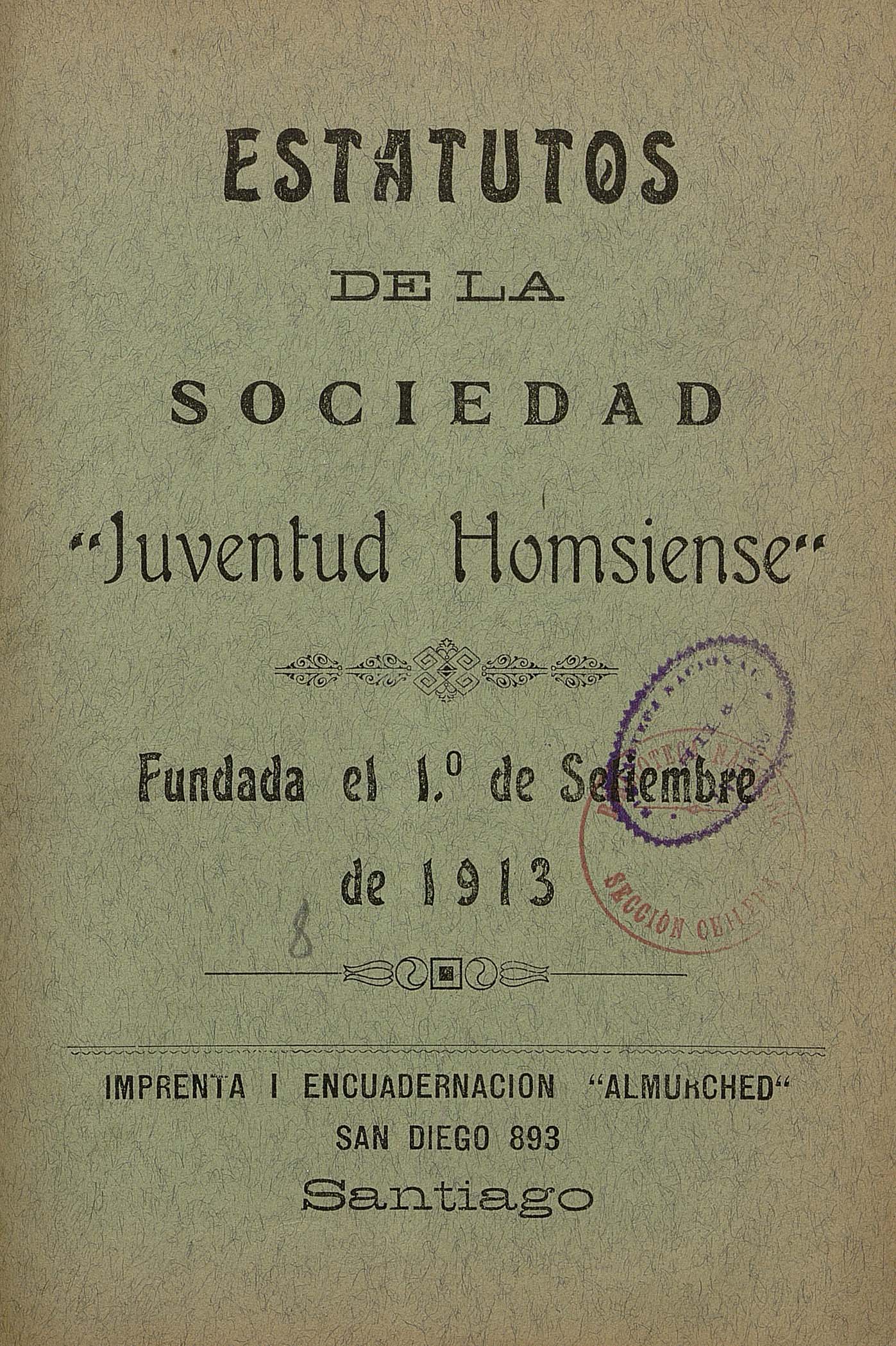 Estatutos de la Sociedad de Beneficencia Juventud Homsiense Siria.