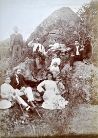 Retrato grupal mixto de un paseo en el campo] [Fotografía].