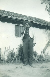 En la fotografía aparece Francisco Ponce frente a una casa de adobe.